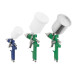 Набір фарбопультів INTERTOOL PT-1505 містить три фарбопульти системи HVLP, такі, як: PT-0102 (PT-0117), PT-0119, PT-0101. Технологія HVLP забезпечує високу ефективність роботи, що характеризується використанням великих обсягів повітря при низькому тиску. Завдяки цьому коефіцієнт перенесення ЛКМ на поверхню, що обробляється, досягає 75%, що дозволяє економно використовувати витратні матеріали. Робочий тиск пістолетів вбирається у 3 атм, витрата повітря коливається не більше 230-300 л/мин. У комплекті два пістолети HVLP з діаметрами форсунок 1,3 та 1,7 мм з двома різними бачками (600 мл) – металевий та пластиковий, а також пістолет HVLP mini з форсункою 0,8 мм (125 мл). Набір закриває потребу в найпопулярніших пістолетах, розмірах форсунок, при цьому ви можете чимало заощадити. Краскопульт HVLP з форсункою 1,3 мм чудово підходить для нанесення базового та фінішного покриття металу, а також нев'язких ЛКМ, у тому числі для використання акрилових фарб та лаків. Також використовується для фарбування металевих, дерев'яних, пластикових виробів, під час проведення авторемонтних, будівельних робіт, виготовлення столярних виробів тощо. Пістолет HVLP з форсункою 1,7 мм застосовується для нанесення ґрунтів, лаків, рідких шпаклівок, емалей та інших ЛКМ, що мають більш високу в'язкість. Пістолет HVLP mini з форсункою 0,8 мм підійде для фарбування невеликих поверхонь, аерографії, тонування та ін.